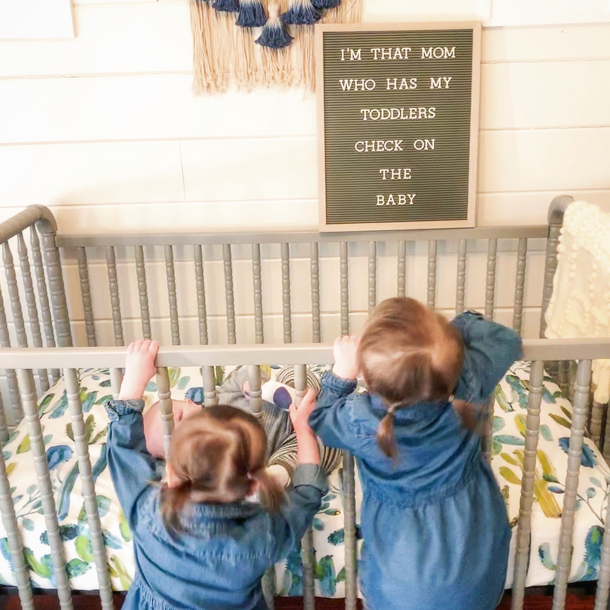 Wear your infant if you need to multitask. I would often wear Hank when prepping meals, going outside with the girls, or if he was extra fussy and didn’t want to be put down. It kept my hands free if the twins wanted me to play with them or if they needed my assistance.