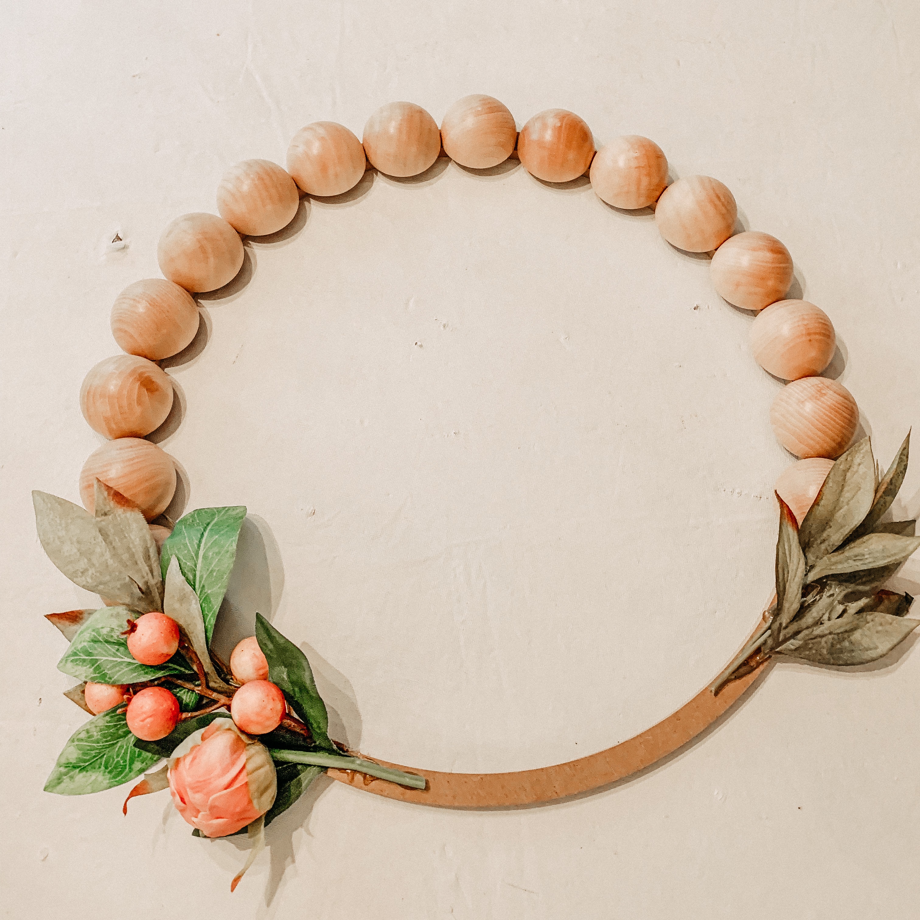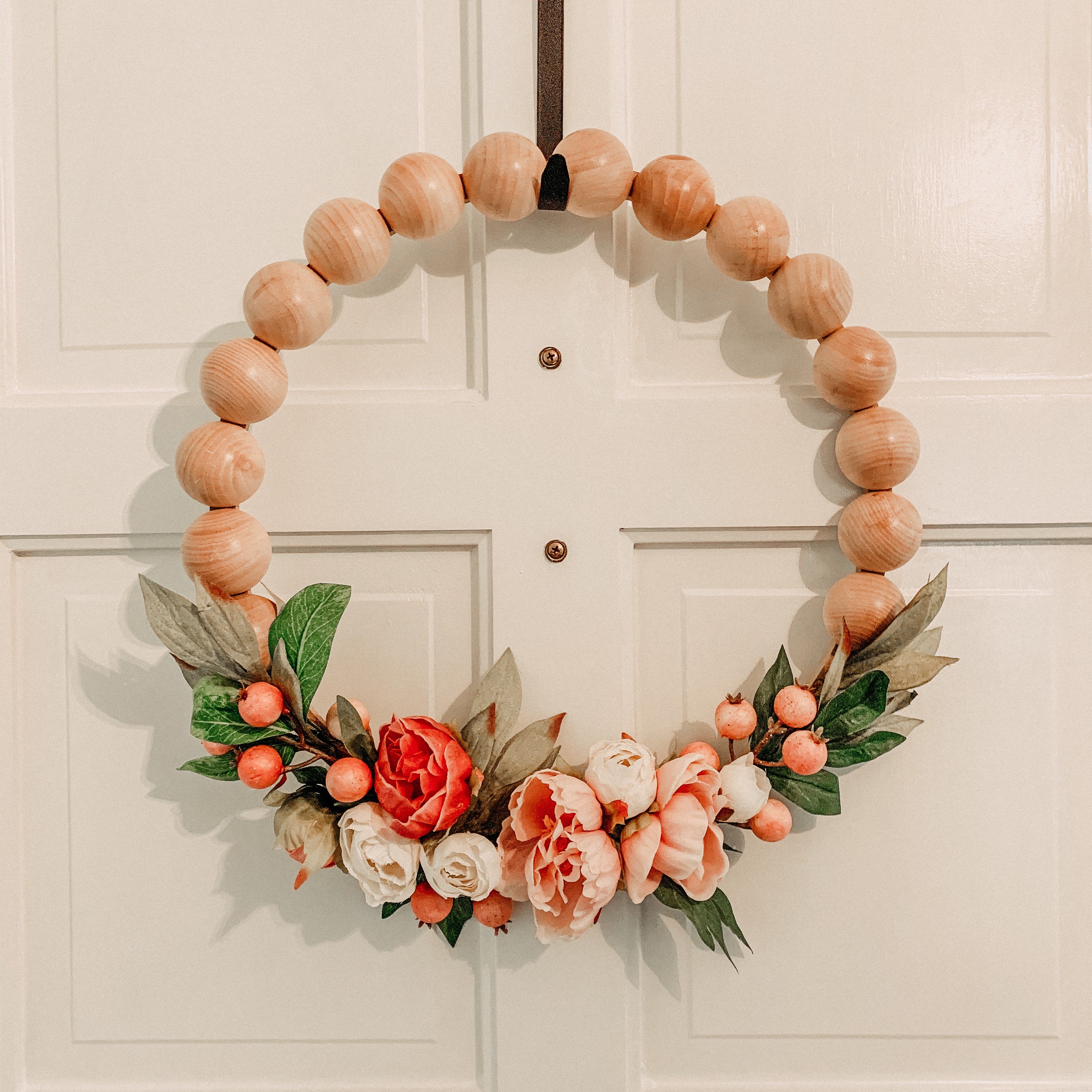 Now that that project is complete, I decided to complete my entryway makeover with a wreath for the newly painted front door (inside). I came across a tutorial for a wood bead wreath from Lolly Jane and decided to try my hand at replicating it.