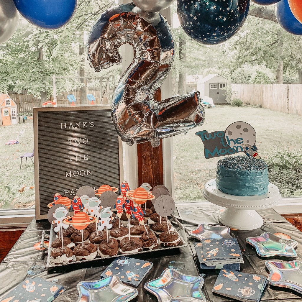 We had Hank’s second birthday party recently and I am absolutely in love how the theme and decor turned out. Seeing as though we are amidst a pandemic, we weren’t able to have the big celebration that I would normally plan (if you know me, you know I love to host a party) but that didn’t stop me from decorating!! I invited our immediate local family to a socially distanced, mainly outdoor party that was out of this world (pun intended). The details on Hank’s TWO THE MOON party are below! Now excuse me while I go take a nap before I have to do this all over again in a couple weeks for the twins’ party.