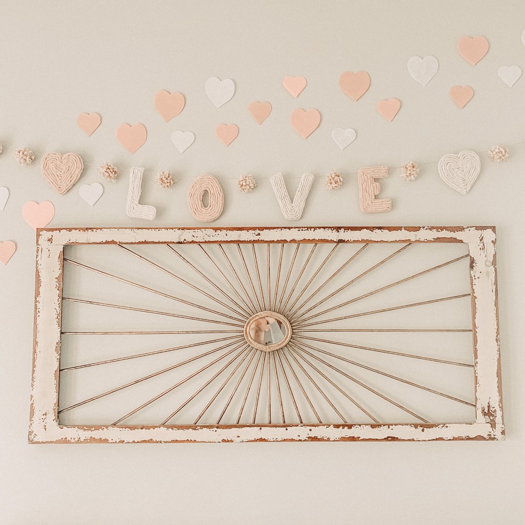 Hang the garland on your mantle, the wall, a bannister, or wherever you choose. This would make a great backdrop for a Valentine’s Day photo or party, as well!