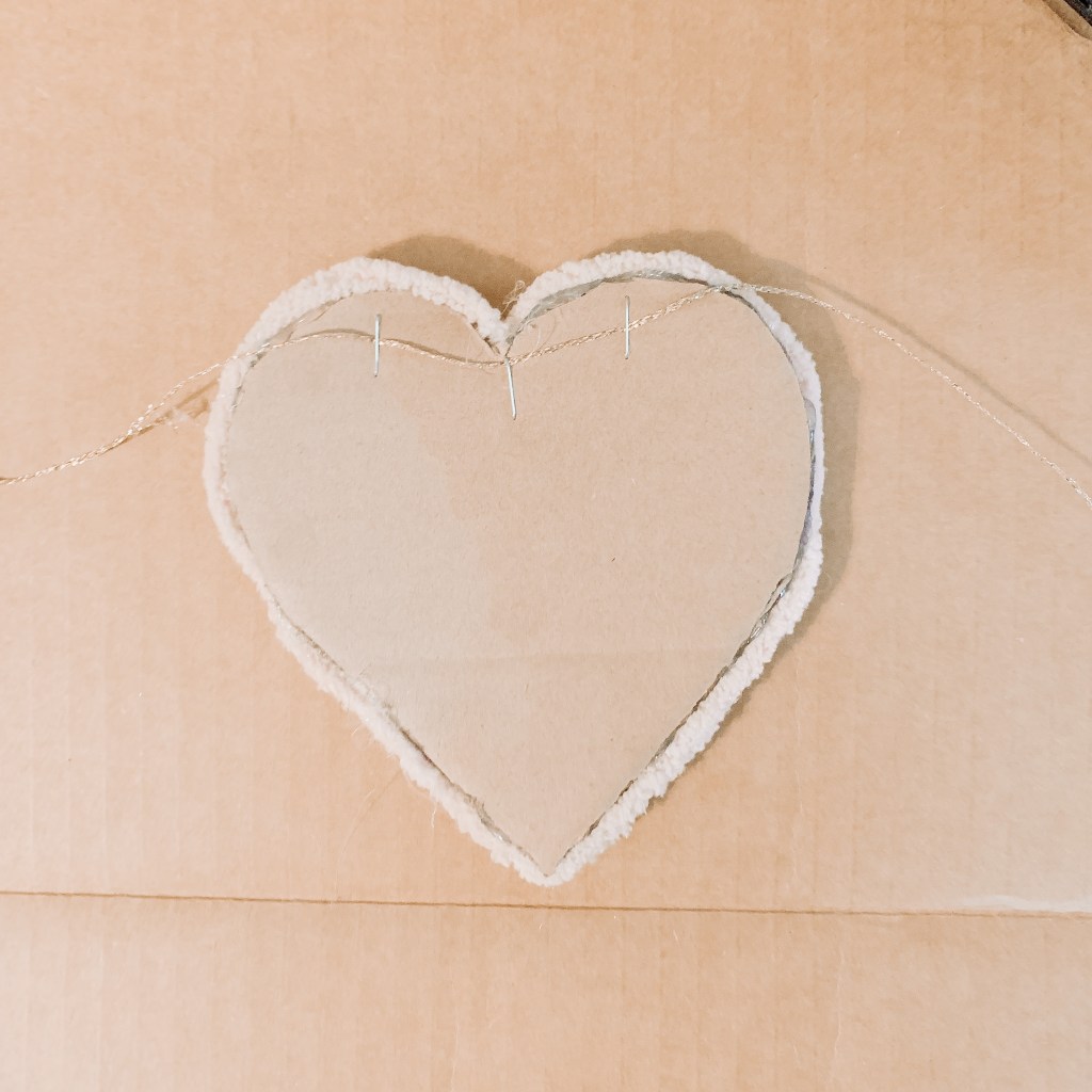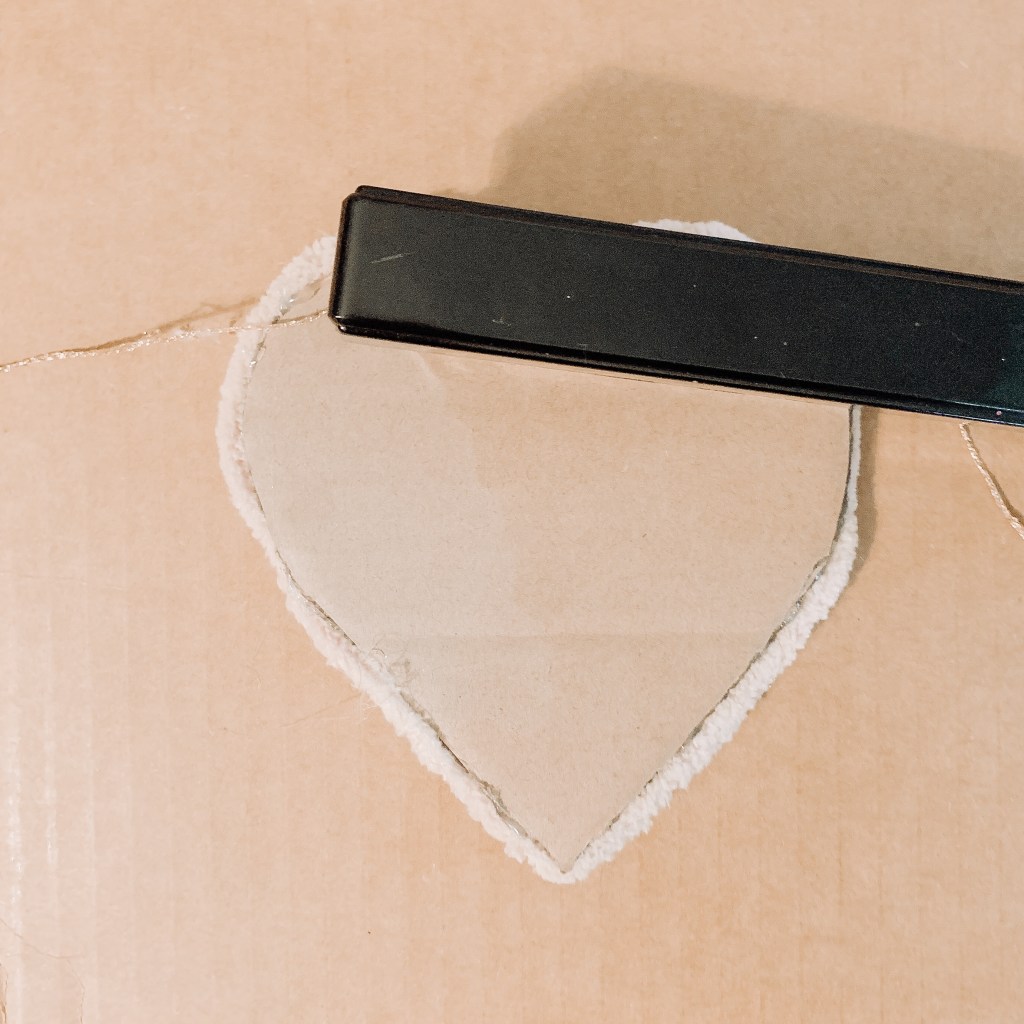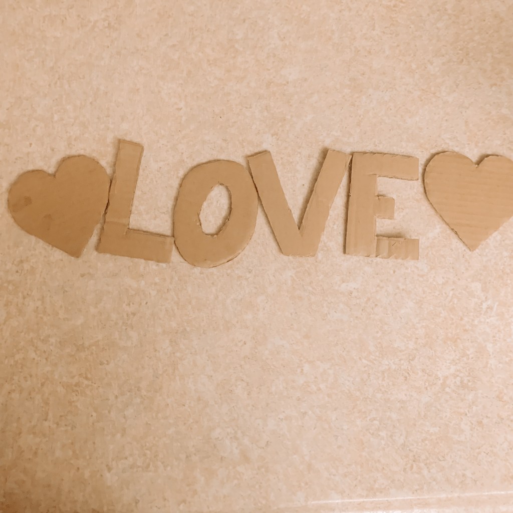 Draw block letters and hearts into cardboard using your pencil. I freehanded mine and just did my best to keep them the same height, but you could totally use stencils.