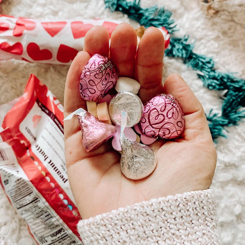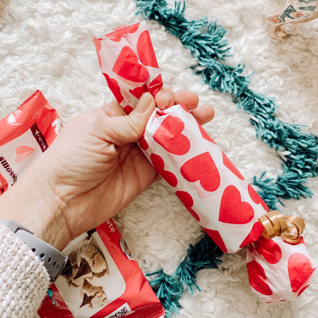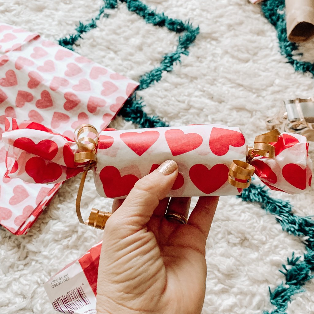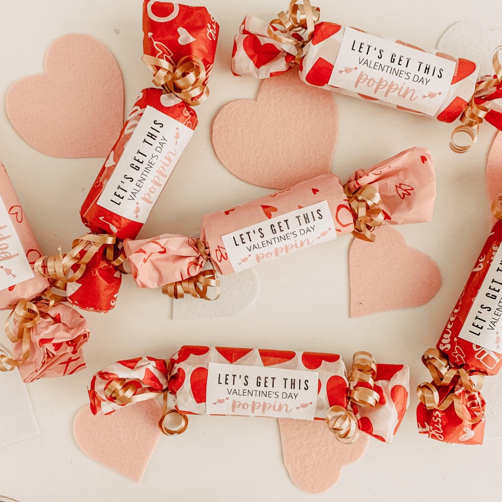 Looking for an easy but creative Valentine treat for your kids to pass out at school or to add to their Valentine baskets?! Well look no further! These Valentine poppers are simple to make but oh so cute. But if you are handing them out to a class full of kids, you’ll want to start saving your cardboard toilet paper rolls around Halloween. Or enlist family and friends to save theirs for you, too!