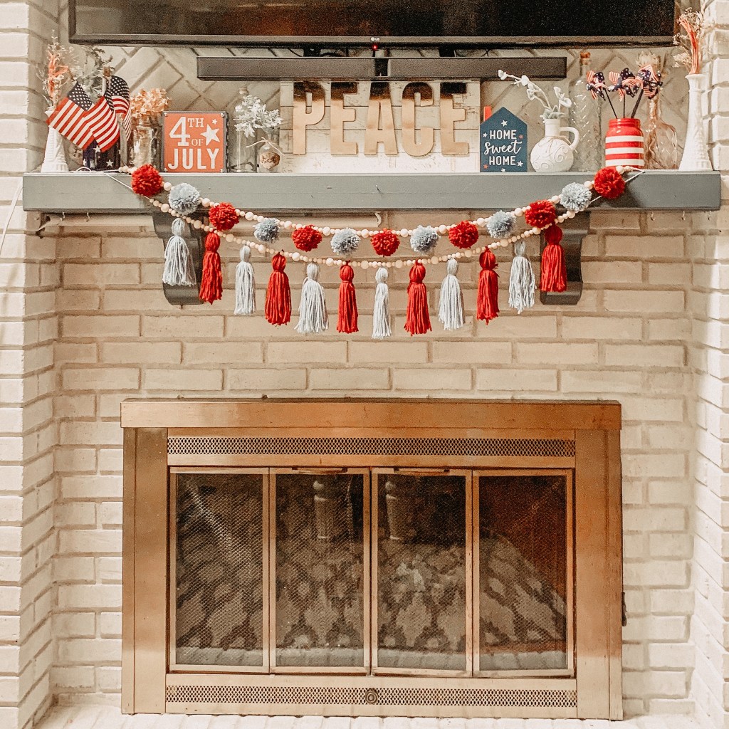 You all know how much I love a seasonal/holiday mantle. But what you may be surprised to learn is that until this year I had never decorated my mantle (or anywhere in my home for that matter) for the 4th of July! So when Decocrated me to write a guest post on am easy 4th of July craft I took that as my cue to bust out my red and blue yarn and curate a super cute patriotic mantle!