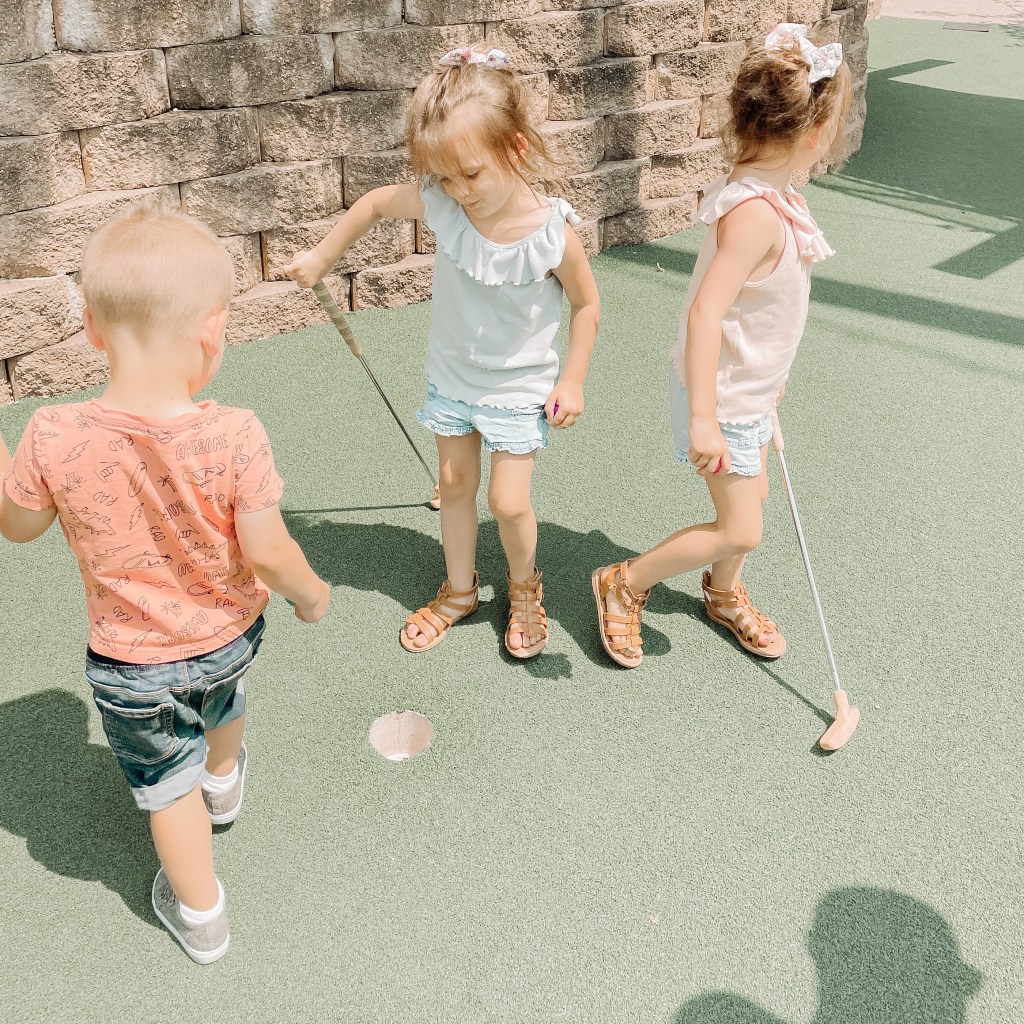 We found a fantastic little spot about 20 miles away in Holland, MI called Craig’s Cruisers. This family fun center had a great variety of things to do, and the kids were absolutely in heaven. They had tot go-karts that Rowe and Lennon had a blast on, and regular go-karts that the big kids loved but Hank hated every second of his ride in a double go-kart with me (even though he asked to go again, and still screamed and cried). In addition to go-karts there are batting cages, an indoor arcade, bungee trampolines and mini golf. Would you believe that Hank got a hole-in-one on the first hole?!?