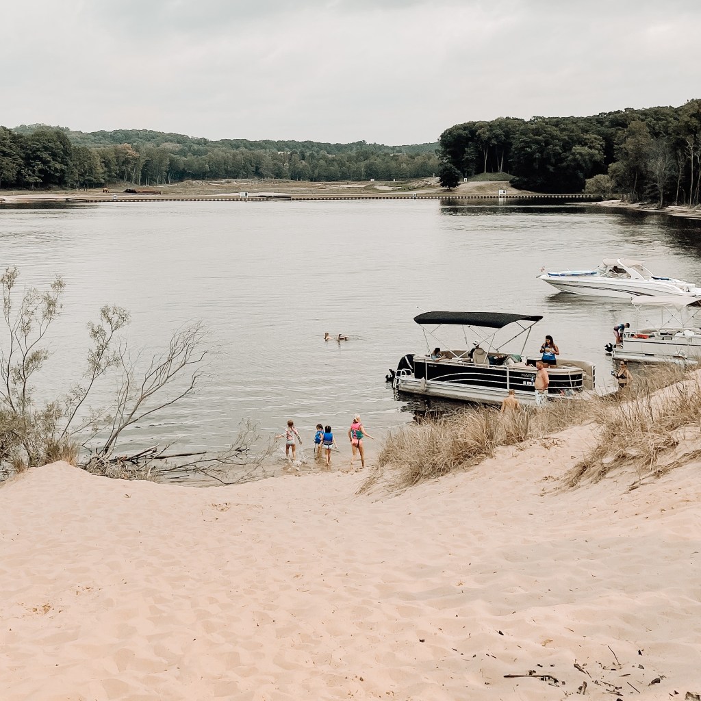 We rented a couple pontoon boats one day and road along the Kalamazoo River. There were so many beautiful houses to look at! We docked at tiny beach with some smaller sand dunes that were perfect for the kids (and adults) to run and jump down.