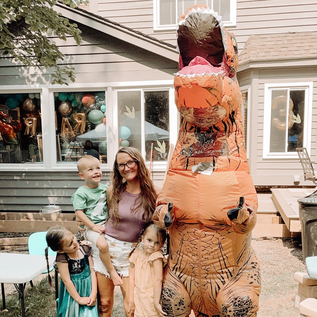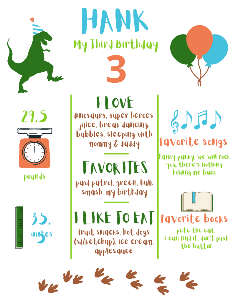 I still can’t believe my baby is three!! We are all still recuperating from Hank’s big Three-Rex birthday bash; boy did we have fun. It was a Dino-lovers dream come true and it filled this mama with so much joy watching his excitement throughout the day. If any of you are searching for a 3-year-old birthday theme (or just a theme in general), I promise you a dinosaur party is super fun and super easy. In fact, it’s sure to be DINO-mite (insert giggles here). Here are all the details.