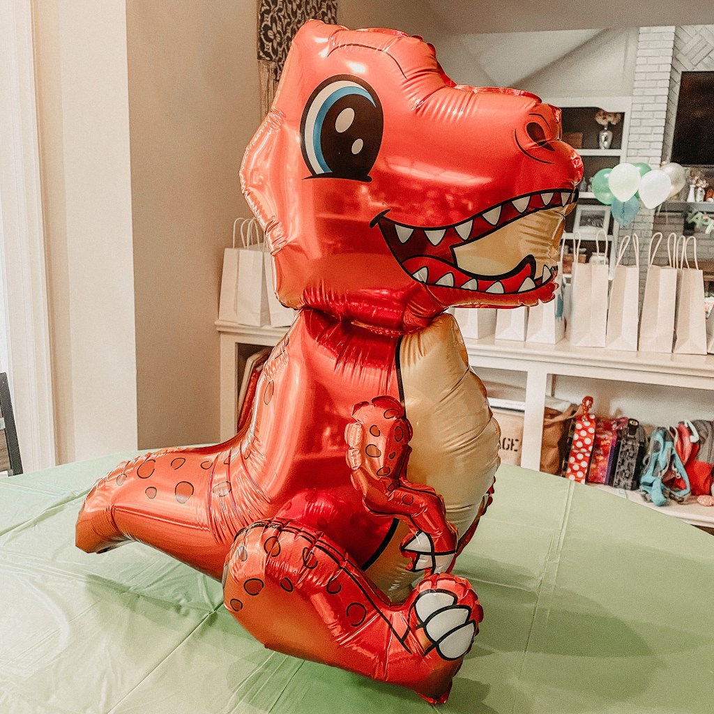 Besides the balloon arch I had a few bouquets of helium-filled balloons scattered about, and several air-filled dinosaur Mylar balloons (these kept my kids occupied for dayssss after the party).