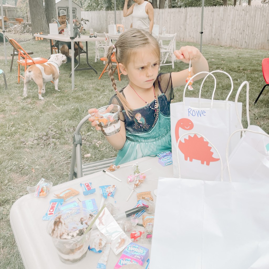 I love having activities at our kids’ parties. I found these plastic dinosaur painting kits on Amazon Prime Day and set them up at a table with smocks for the kids to enjoy.
