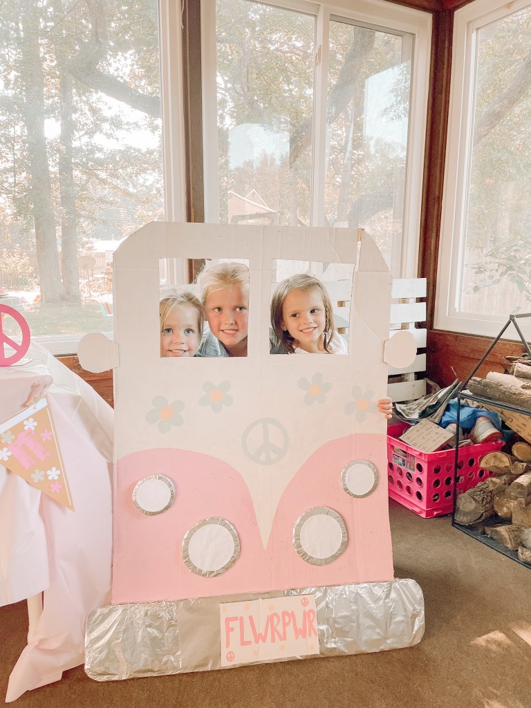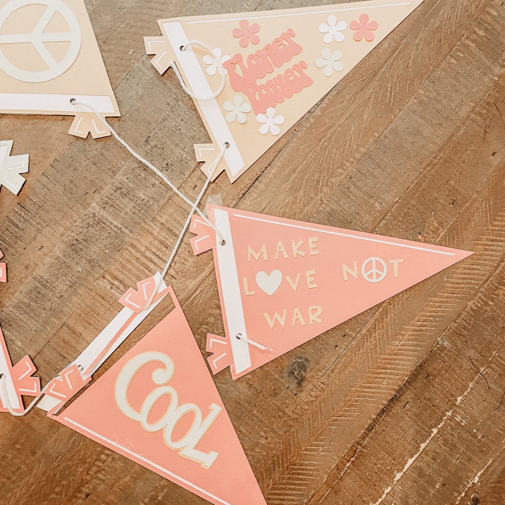 I love the little details like the VW bugs, peace signs, smileys and rainbows. The flags had cute, themed phrases like Groovy, Flower Power and Be Kind.