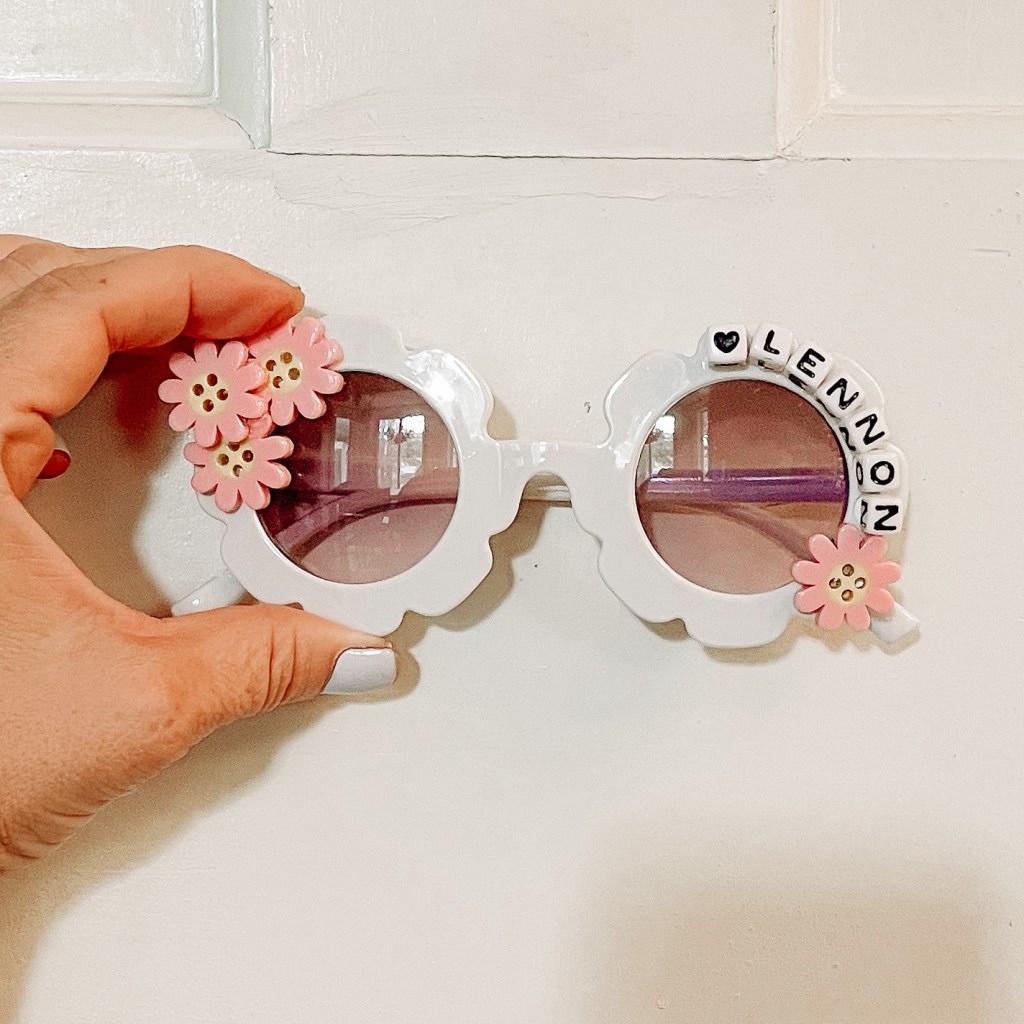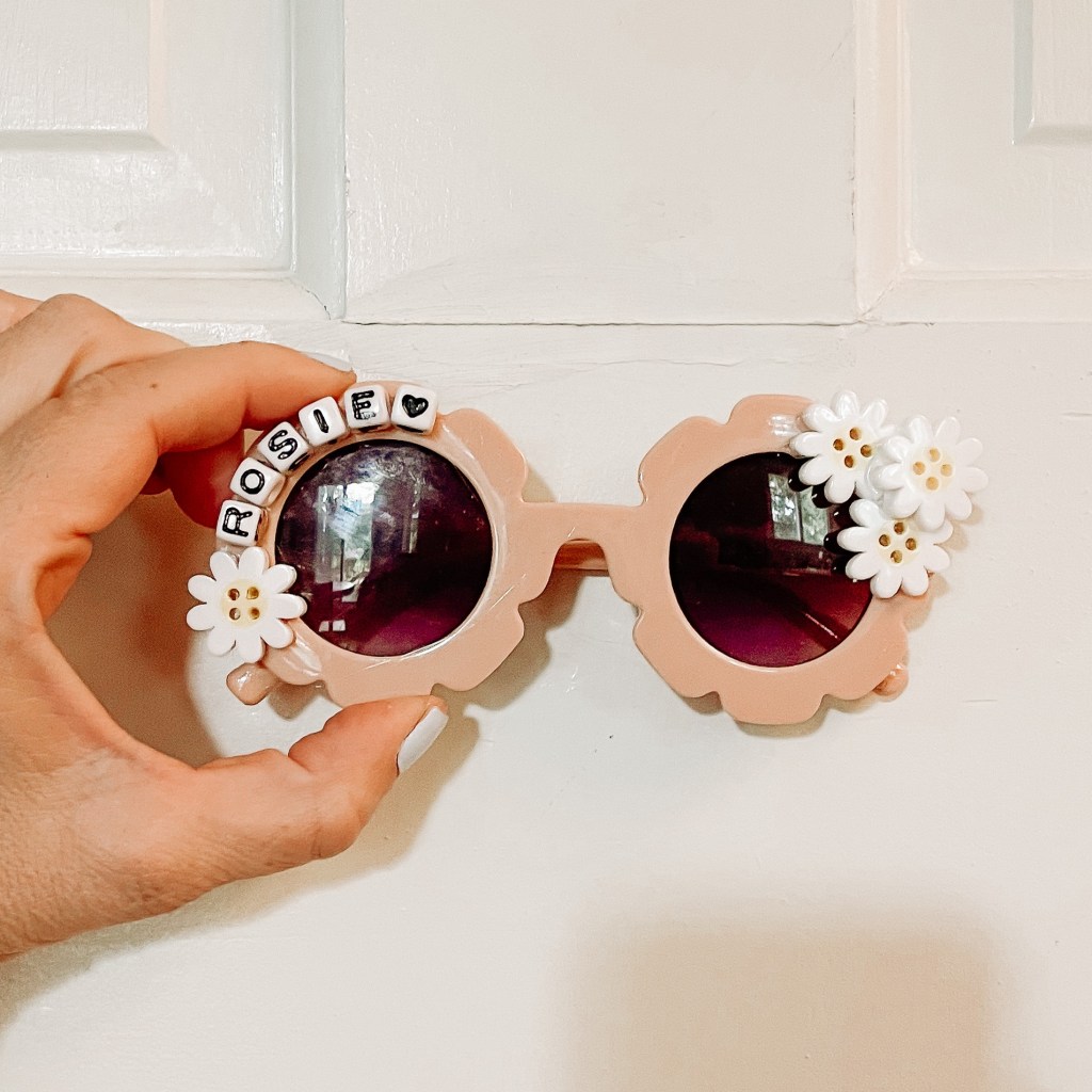 These are probably one of my favorite DIYs and it was so easy! I bought these flower sunglasses on Amazon and the letter beads and daisy buttons from Hobby Lobby. I got glued them on and boil!