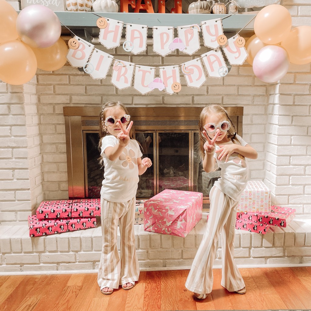 Are these not the cutest bell bottoms? I got the girls’ pants from Bailey’s Blossoms (with a bunch of other cute stuff) and my mom made their shirts with her Cricut. I even bought myself a new daisy skirt from Shein!