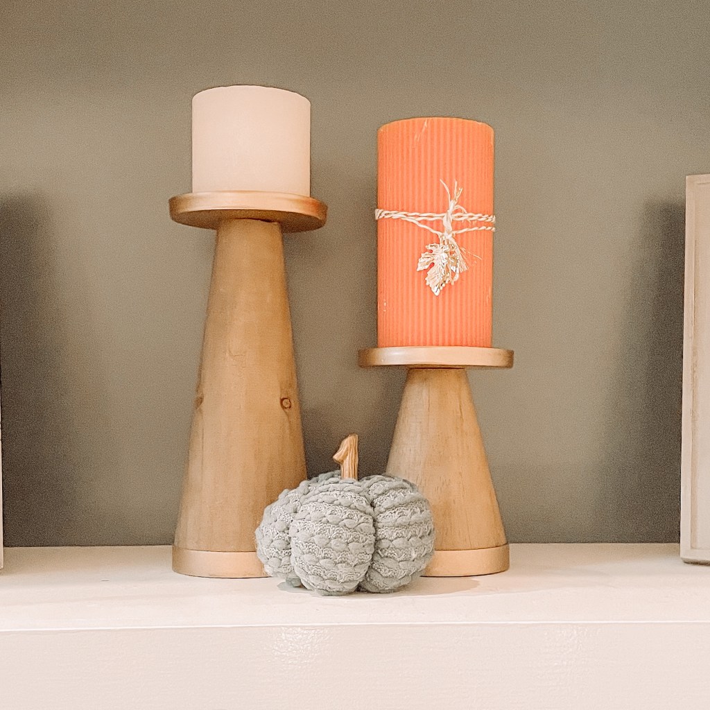 I have never in my life owned a set of candlesticks and now I keep asking myself why?! At first I wasn’t sure where or how to use these, but after grabbing a couple of fall candles from Target I fell in love with these! They are on the too shelf of my built-ins and I think they will stay there forever and I will just switch out the candles for the season!