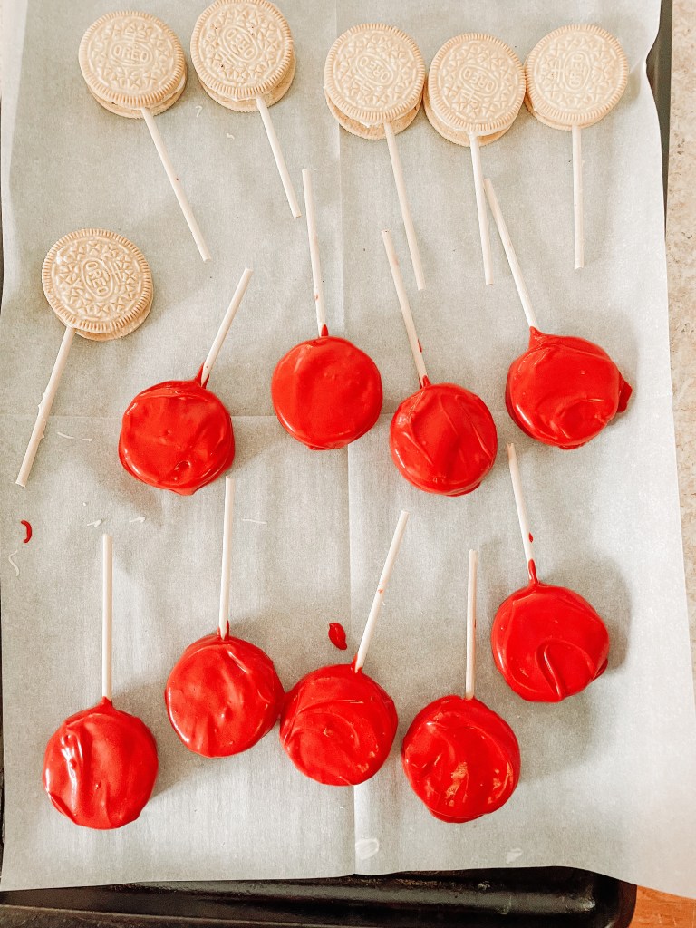 I’ll admit; they take a bit of practice and patience as I broke quite a few Oreos as I was trying to get the popsicle stick to stick. But your know what’s great about broken Oreos? You can eat them of course!