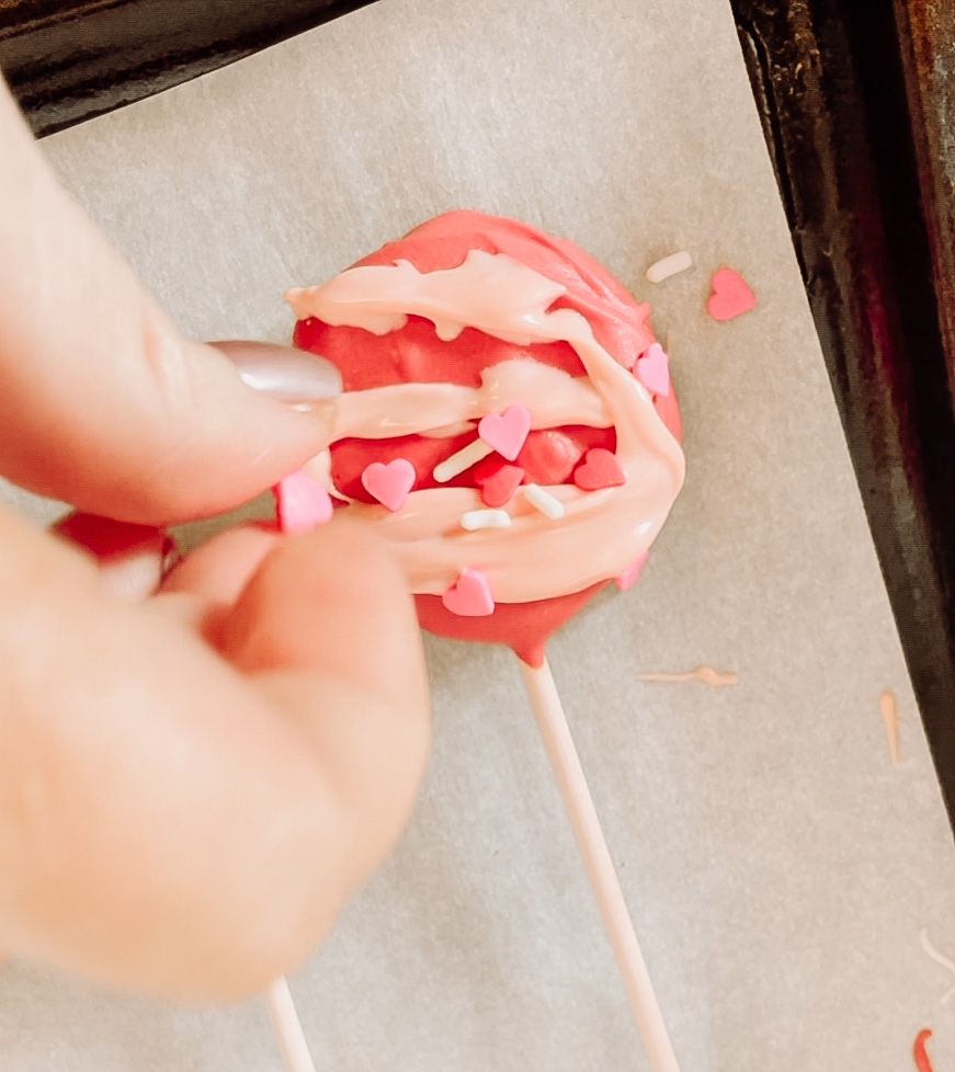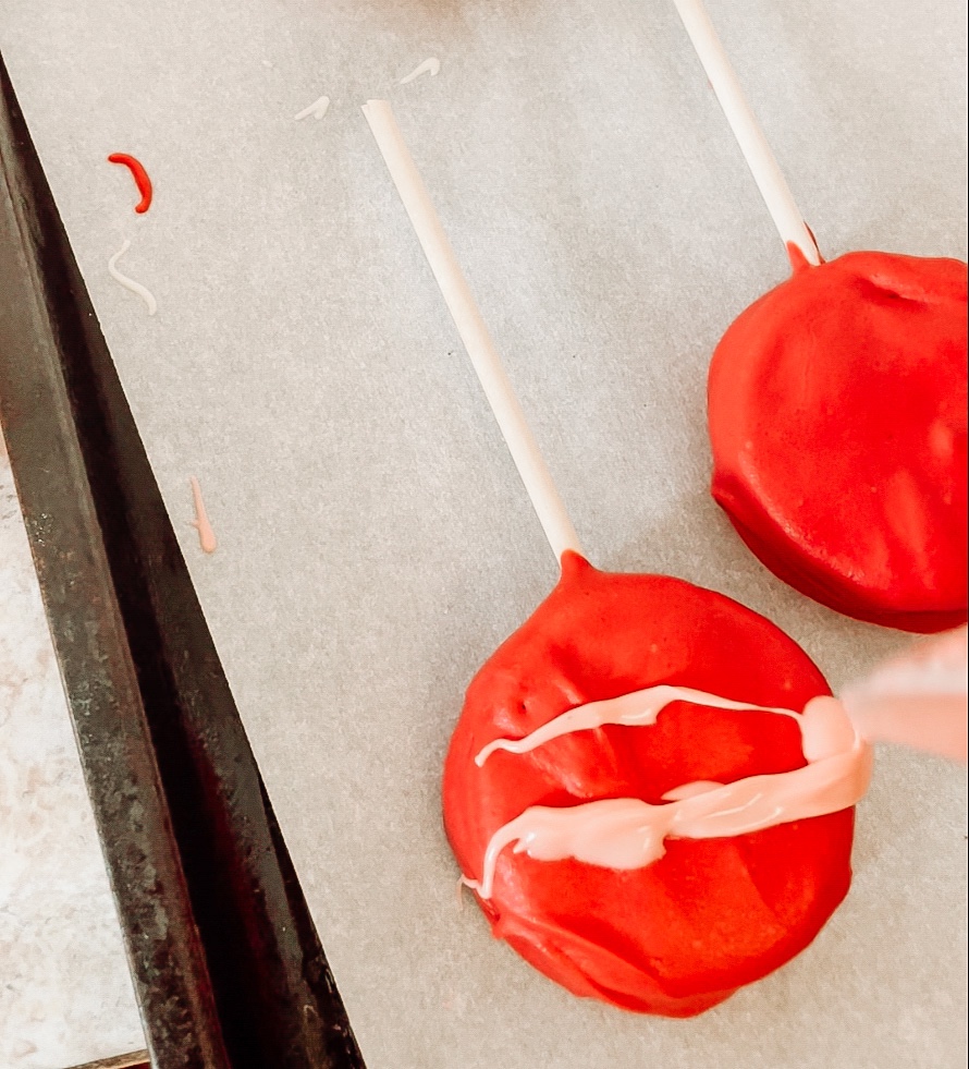 Melt a different color of chocolate and use a spoon/spatula to drizzle it over the tops of the Oreo pops.