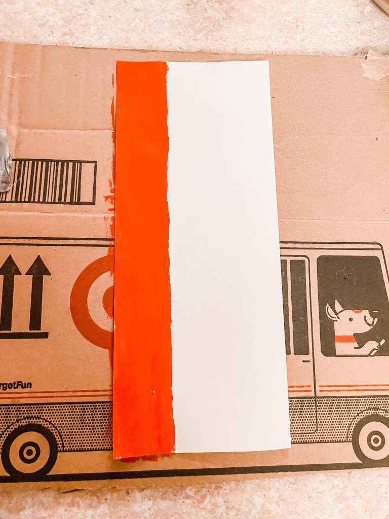 Paint a long red stripe on one side of the paper, about 1/3 of the width of the paper.