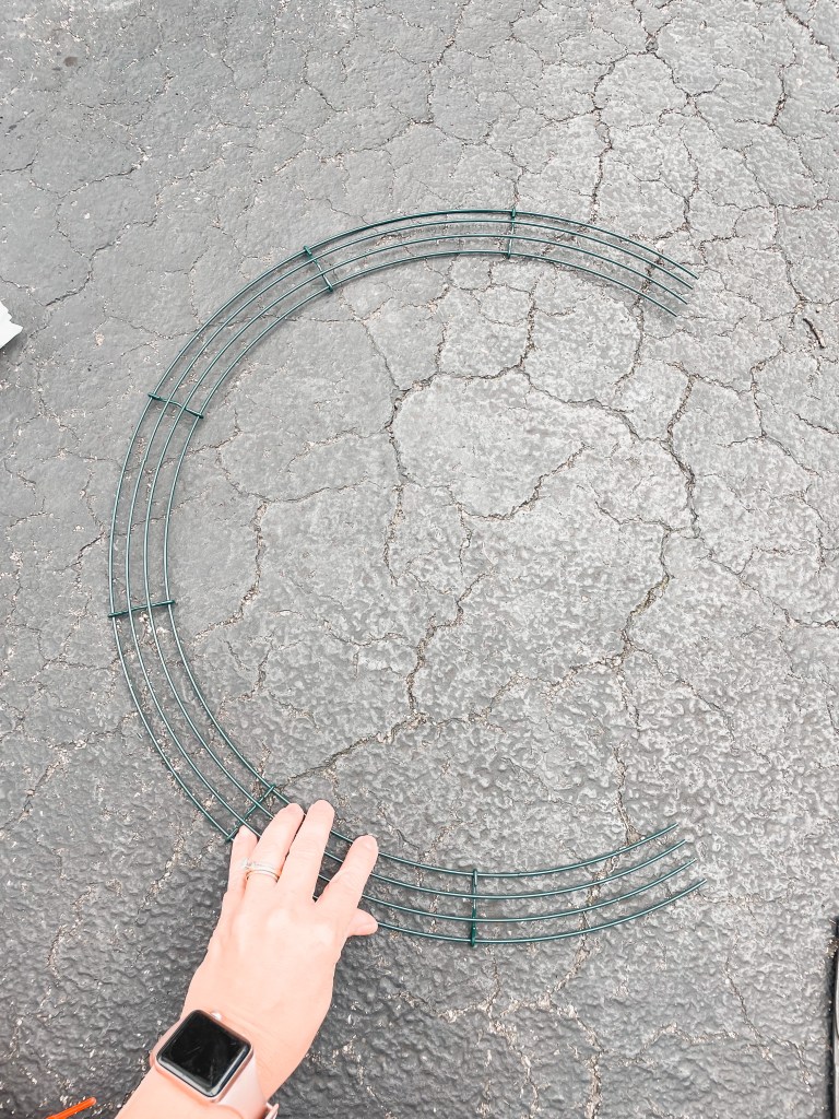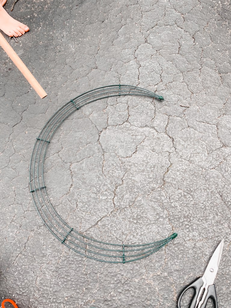 Start by cutting off about 1/3 of your wire wreath form with the wire cutters.