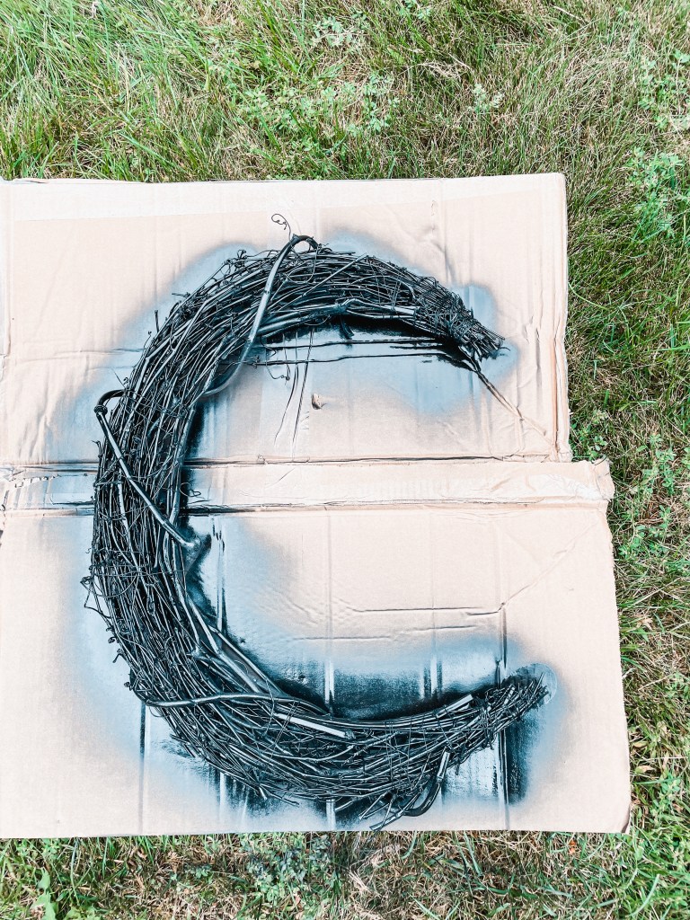 Spray paint the grapevine moon black and allow to dry.