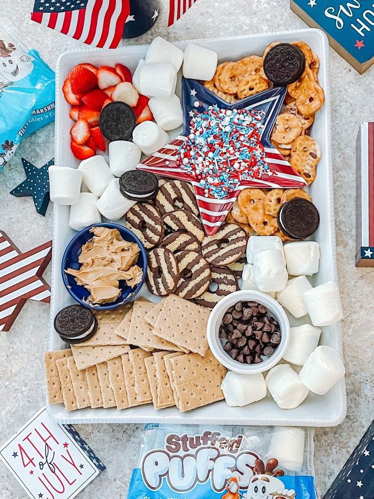 Want to make the BEST s’mores board for your summer parties? Here is a list of everything I included on my latest board….the secret ingredient? Stuffed Puff’s Filled Marshmallows. These marshmallows are filled with chocolate, caramel, or (my fav) cookies n cream! You can find them at Walmart!