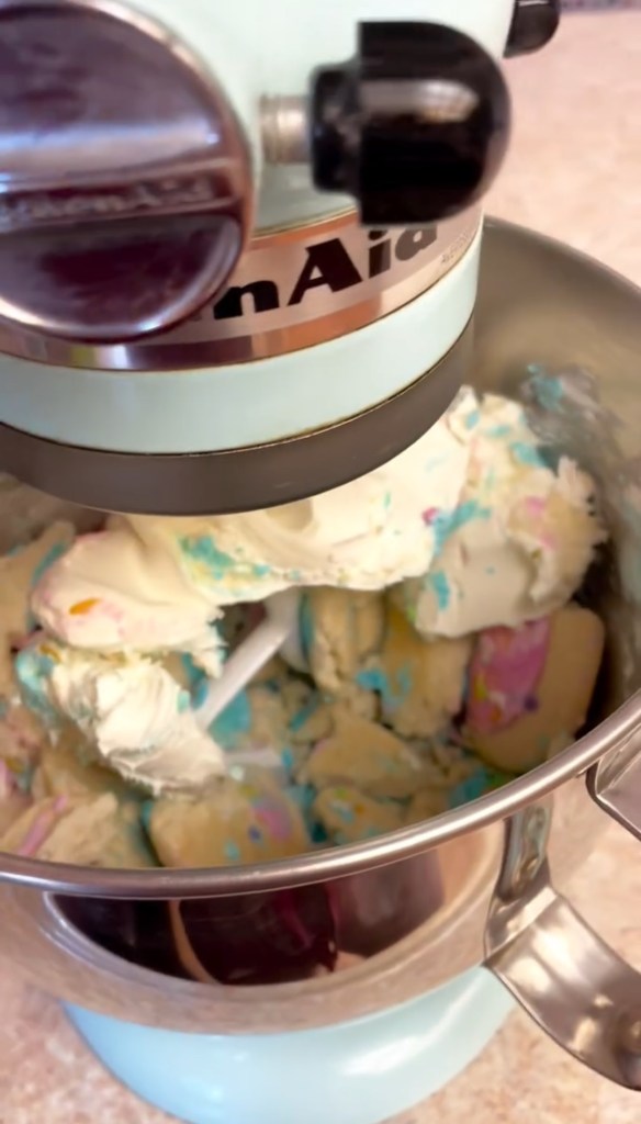 Mix together sugar cookies and cream cheese using a stand mixer until well blended.