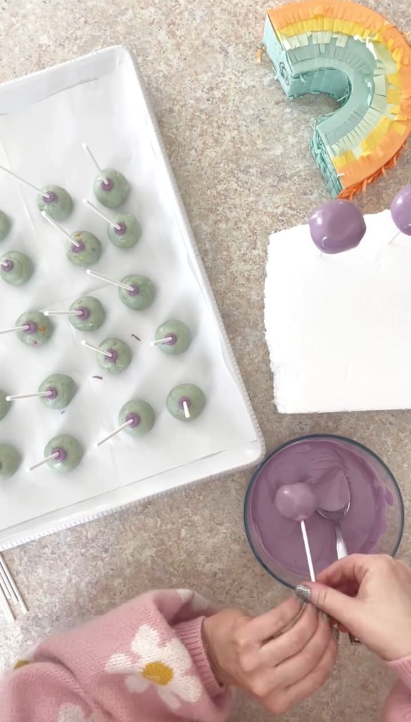 Remove pops from the fridge. Dip in chocolate until fully covered.