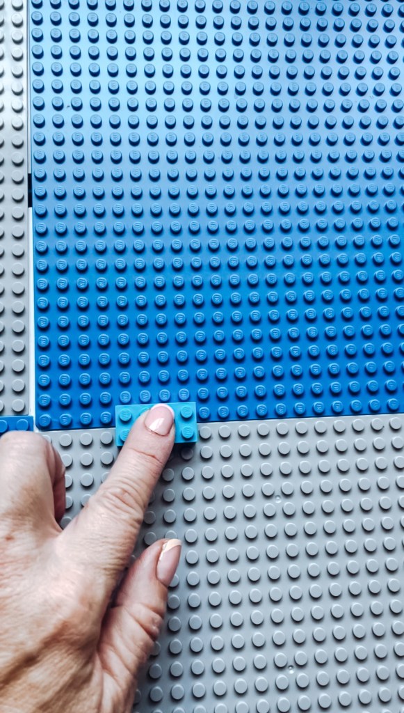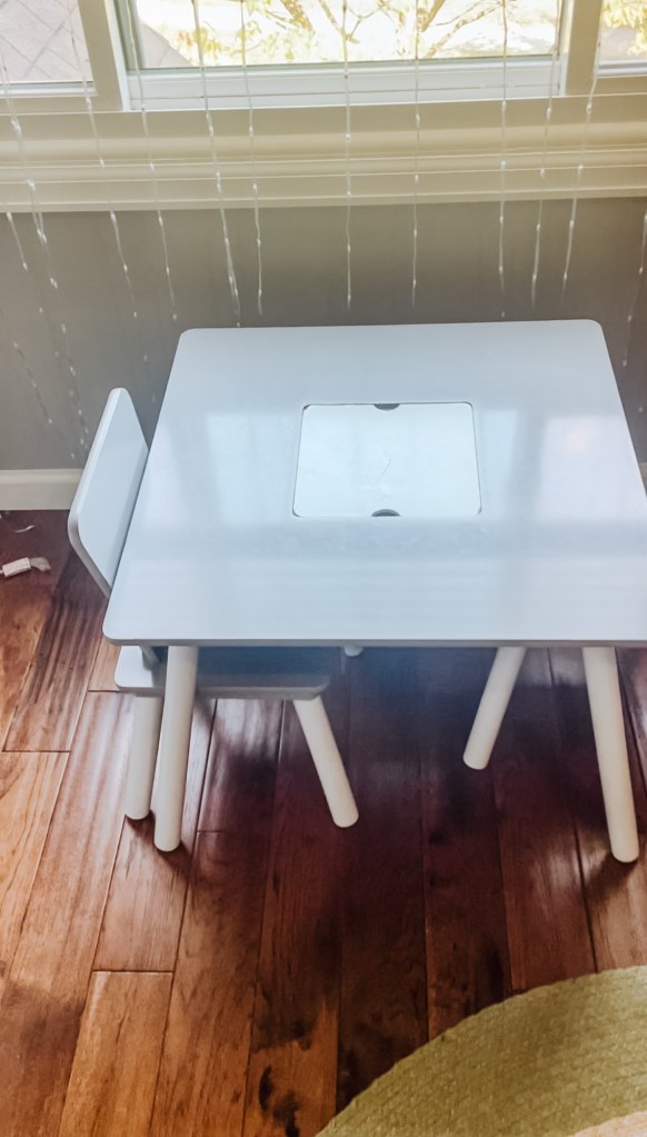 Hank has had a small play table in his bedroom since he was a toddler and it was pretty beat up. I had a genius idea to repurpose this into a LEGO table and then use a set of plastic drawers that were collecting dust in my attic to store the LEGO pieces and sets. All I had to purchase were the LEGO base pieces!