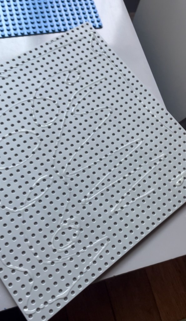 Repeat this process with each base piece. You can use LEGO pieces to hold the bases in place next to eachother.
