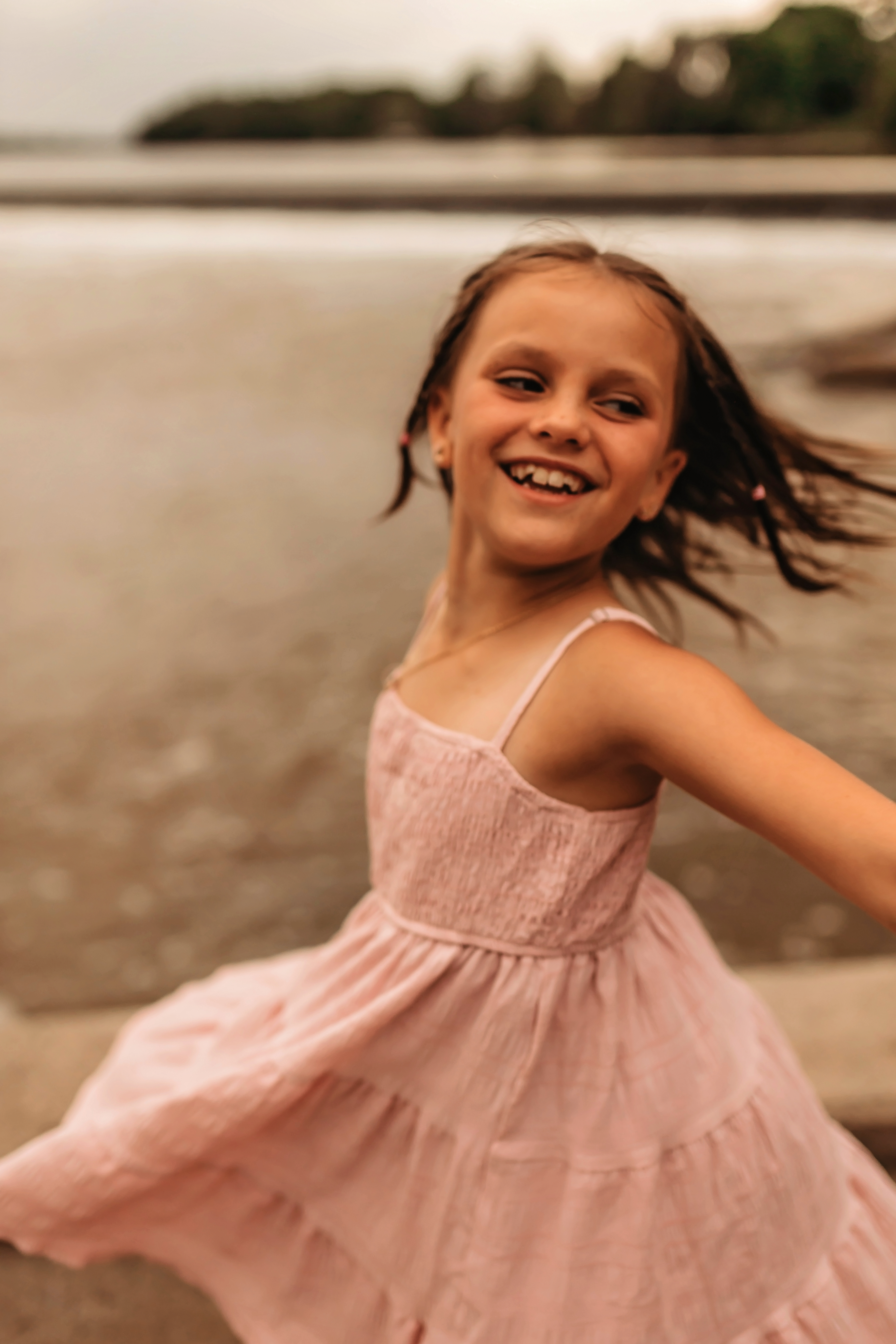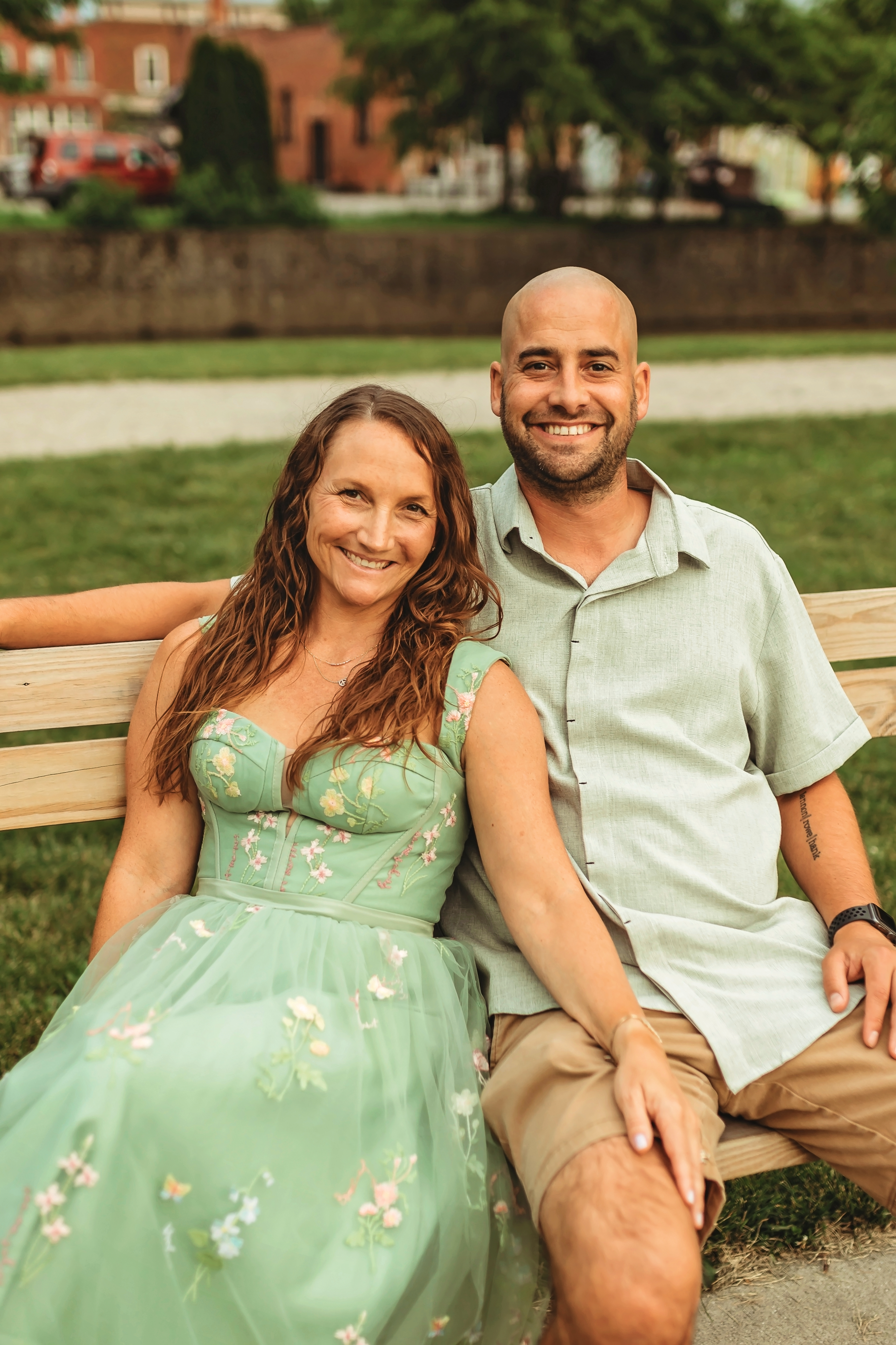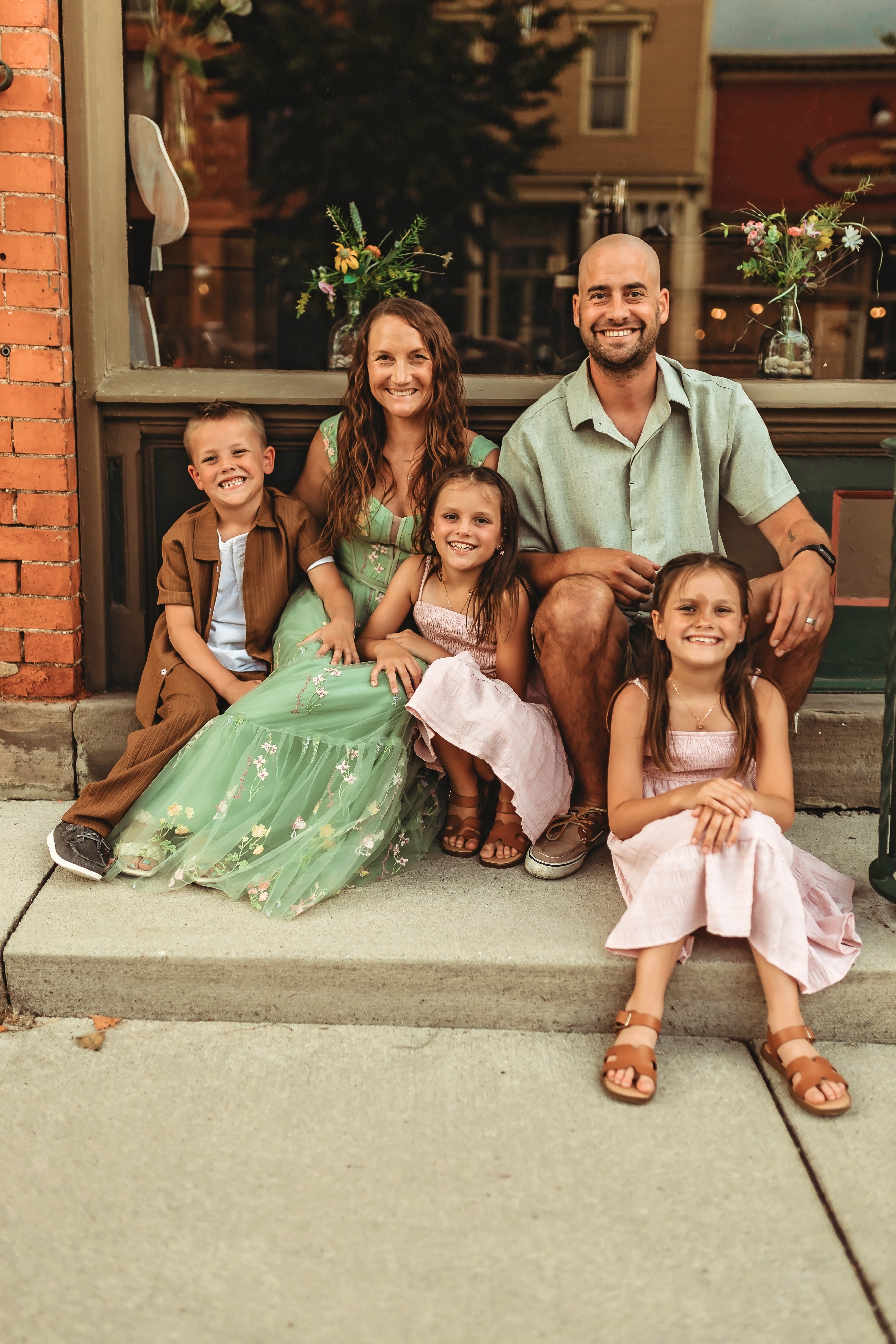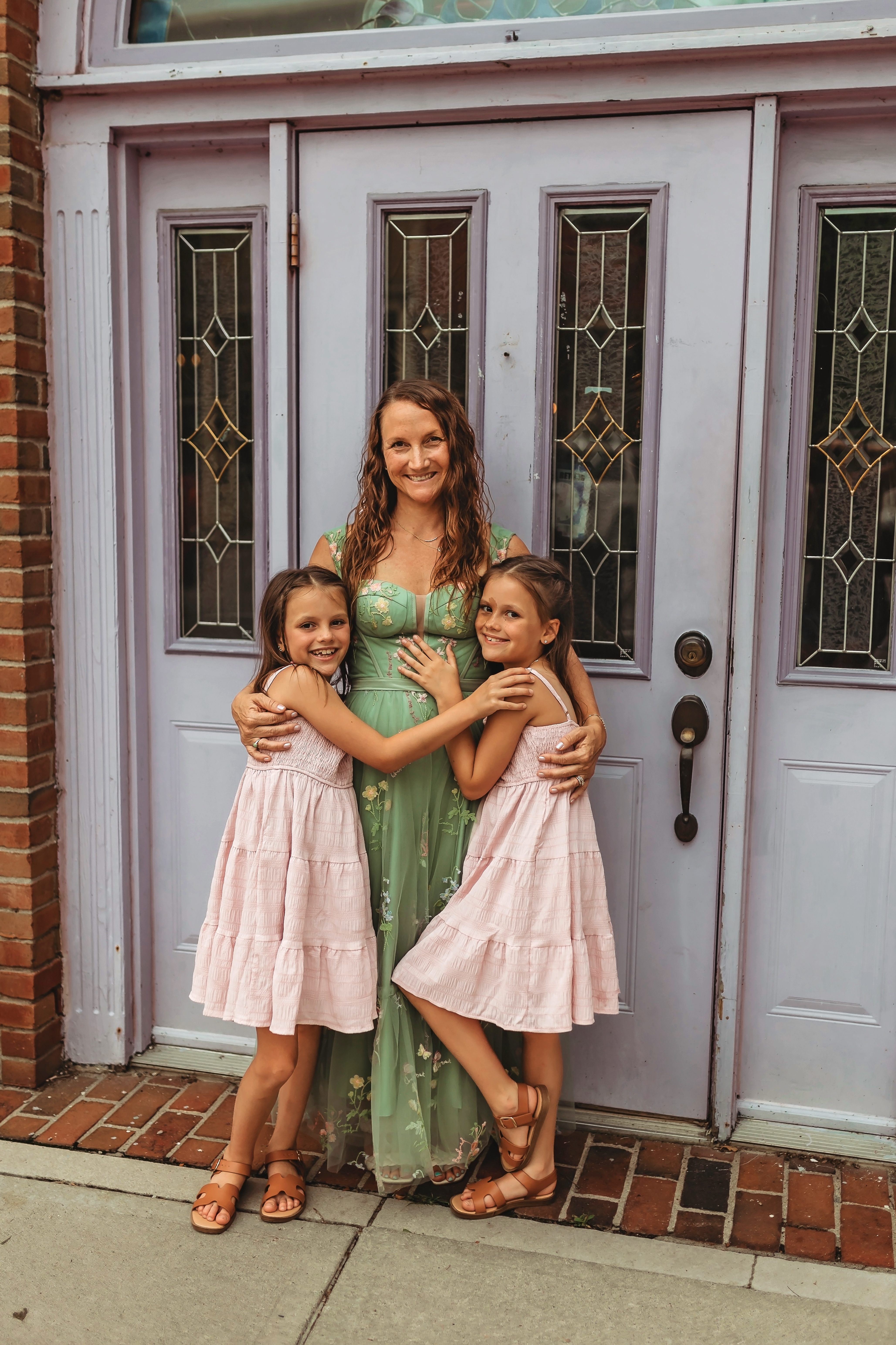 She found us the perfect location in Grand Rapids, OH — think riverfront charm, cozy small-town vibes, wildflowers, and beautiful soft light. Add in some coordinated outfits (hello blush pinks, earthy browns, and a flowy green dress I’ll never stop loving) and it all felt like a scene out of a storybook. This green dress is EVERYTHING and I can’t wait to find another occasion to wear it.