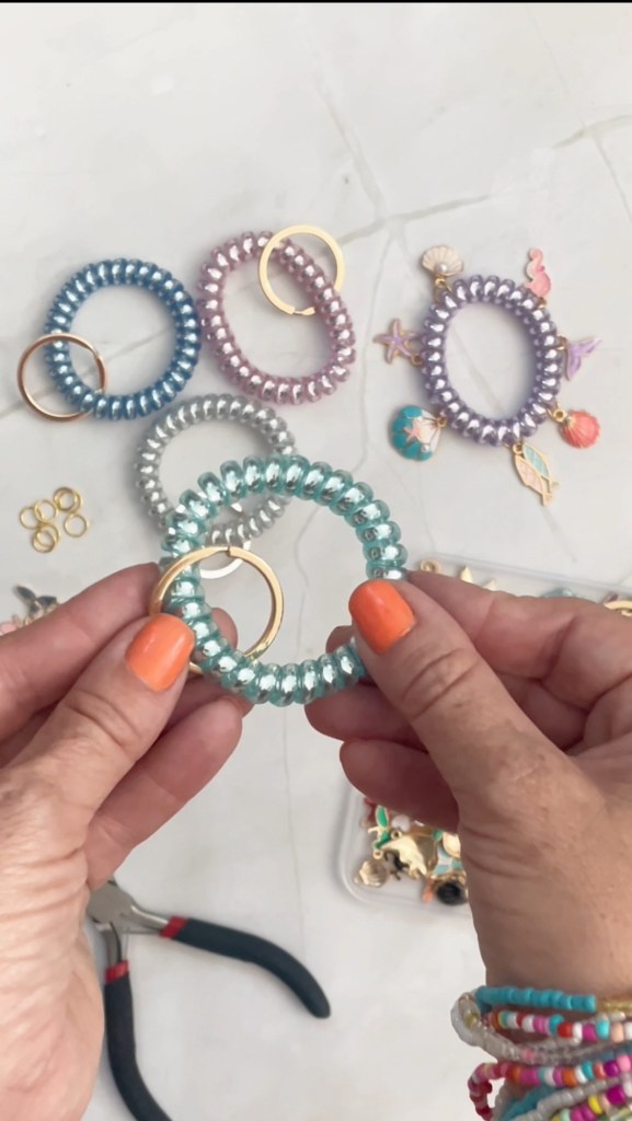 Remove the keychain ring from the elastic coil bracelets (if applicable).