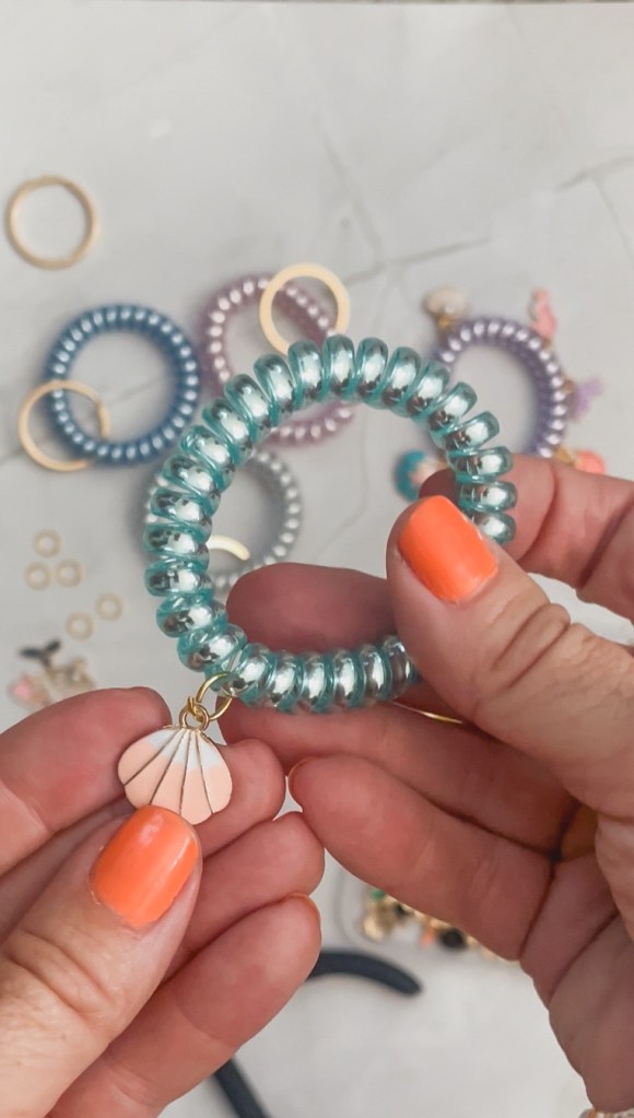 Add the jump ring + charm to the elastic coil bracelet. Close the jump ring around the bracelet using the jewelry pliers.