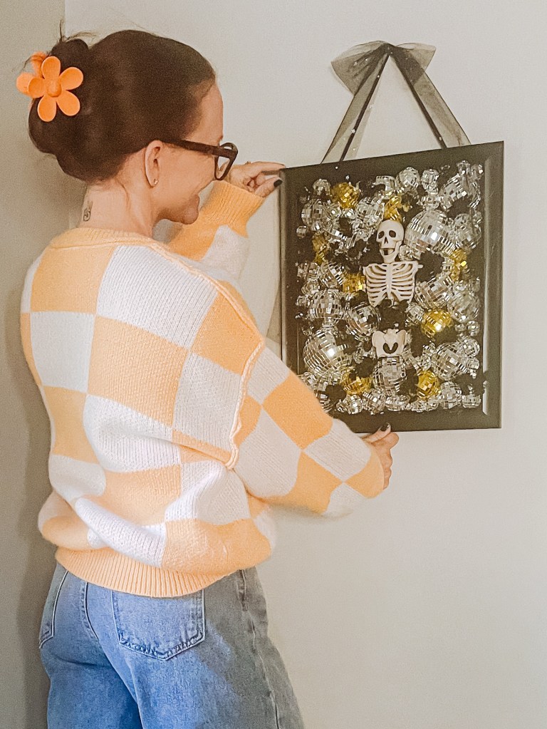 Looking for a Halloween project thatโs spooky and glam? This DIY Disco Ball Skeleton Wall Hanging combines eerie skeleton vibes with sparkling disco energyโperfect for anyone who loves a little shine with their scare. Itโs a statement piece that looks like something straight out of a haunted dance party, and the best part isโitโs surprisingly easy to make!