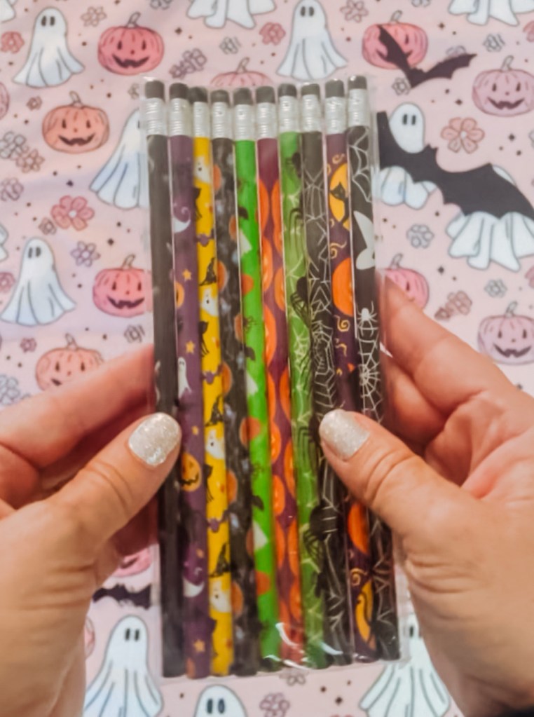 Add the handle: Place a Halloween pencil into the center of the bag with the eraser side pointing up.