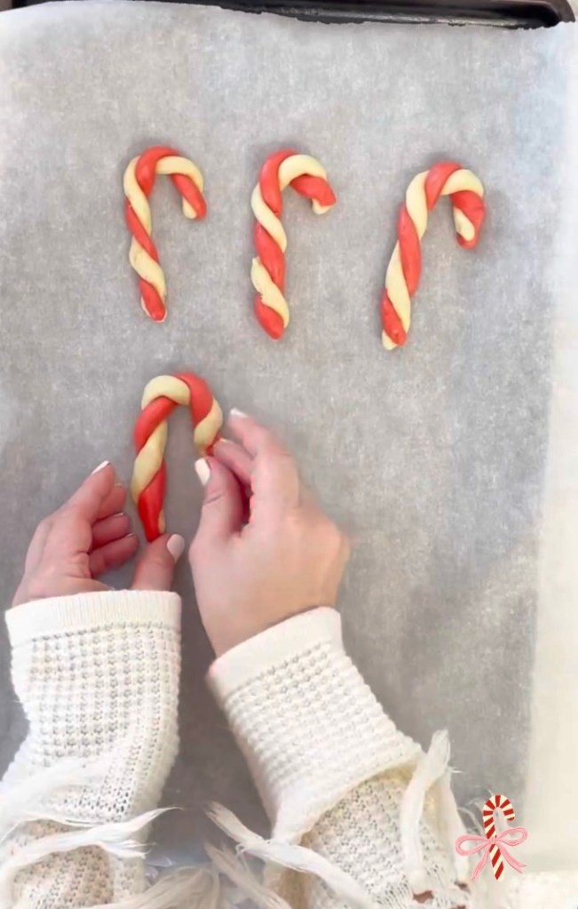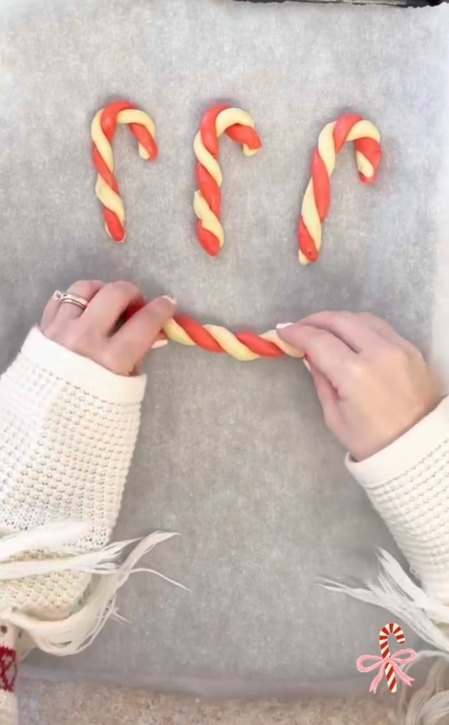 Rolling and twisting the red and white dough together is relaxing and kid-friendly — a great way to slow down and enjoy the season.