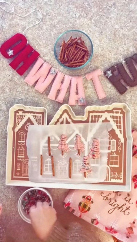 Immediately sprinkle your favorite holiday sprinkles on top before the chocolate starts to harden. This is the fun part for kids to help with!
