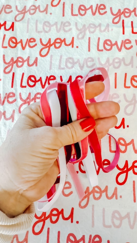 - Velvet ribbon in a variety of Valentine colors (think pink, red, purple, white, etc.)