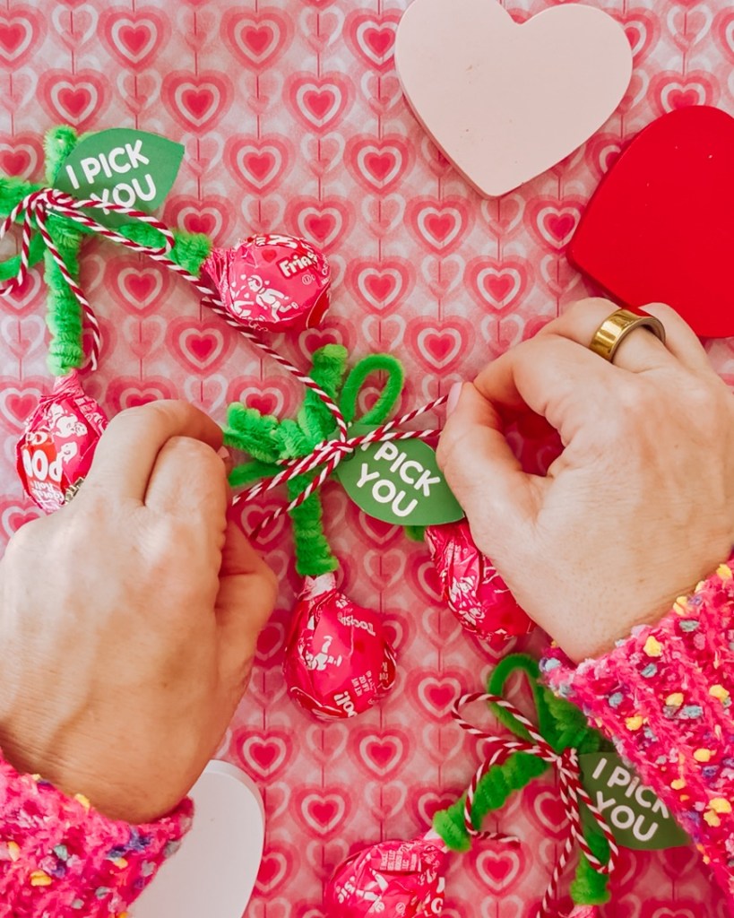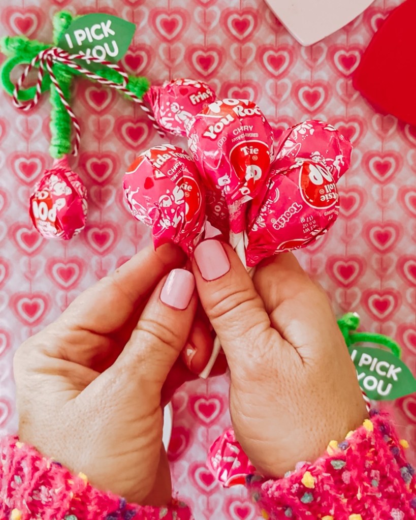 - Multiple bags of Valentine Tootsie Pops (cherry works best!)